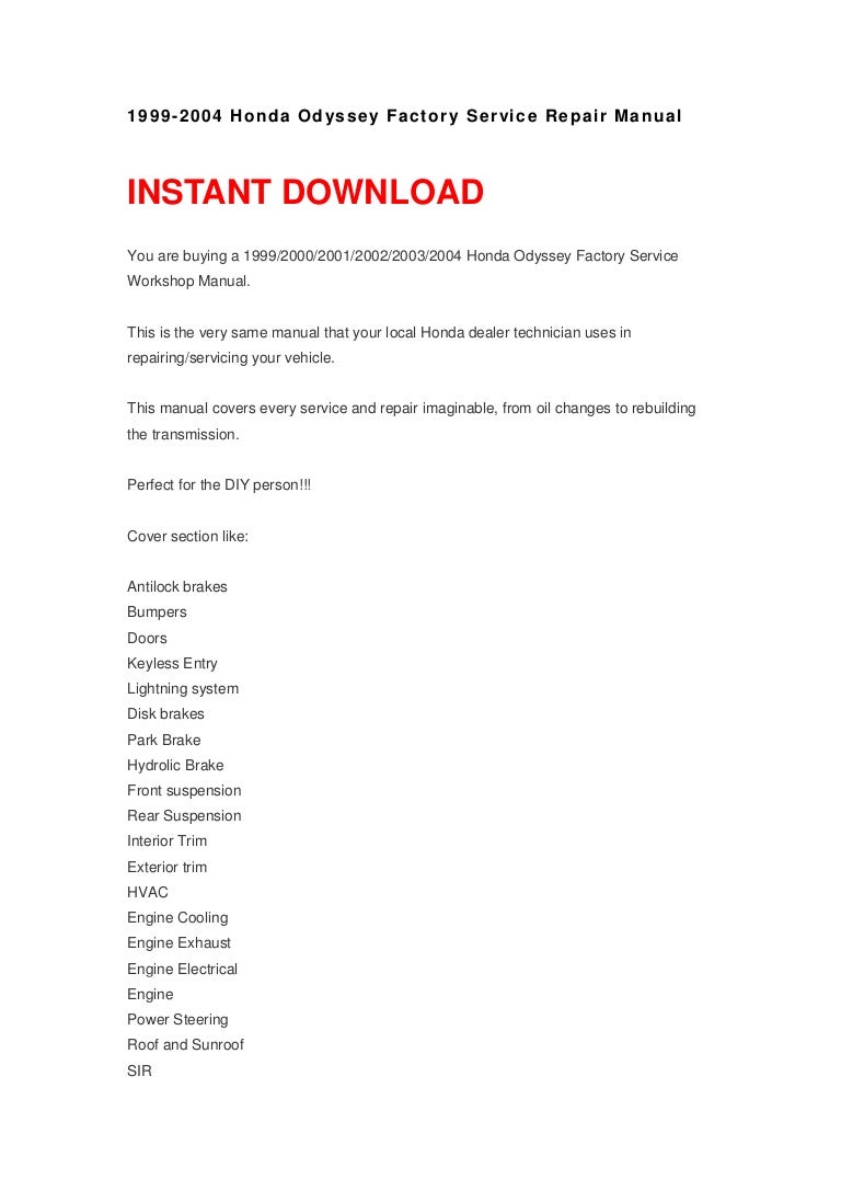 2000 Honda Odyssey User Manuals - We give instant downloads access to service, user and repair manuals of brands like Alfa Romeo, Daewoo, Honda and more car and bike manuals.. Want to make your 2000 Honda Civic Si one of a kind, keep it running at its peak, or turn it into a high-powered beast? Our vast selection of premium accessories and parts ticks all the boxes.. Find your owner's manual and get detailed information about coverage and terms of your Honda warranty, including tires, accessories, replacement parts, and more..18.03.2016 · Welcome to Honda Odyssey Forum : Odyssey Minivan Forums - a website dedicated to all things Honda Odyssey. You are currently viewing our forum as a guest, which gives you limited access to view most discussions and access our other features.. Honda Civic Si Accessories and Parts: Euro Tail Lights, Billet Grilles, Custom Headlights, Floor Mats, Performance Exhausts, Wind Deflectors, Cargo Liners, Wood. 22.08.2016 · Welcome to Honda Odyssey Forum : Odyssey Minivan Forums - a website dedicated to all things Honda Odyssey. You are currently viewing our forum as a guest, which gives you limited access to view most discussions and access our other features..