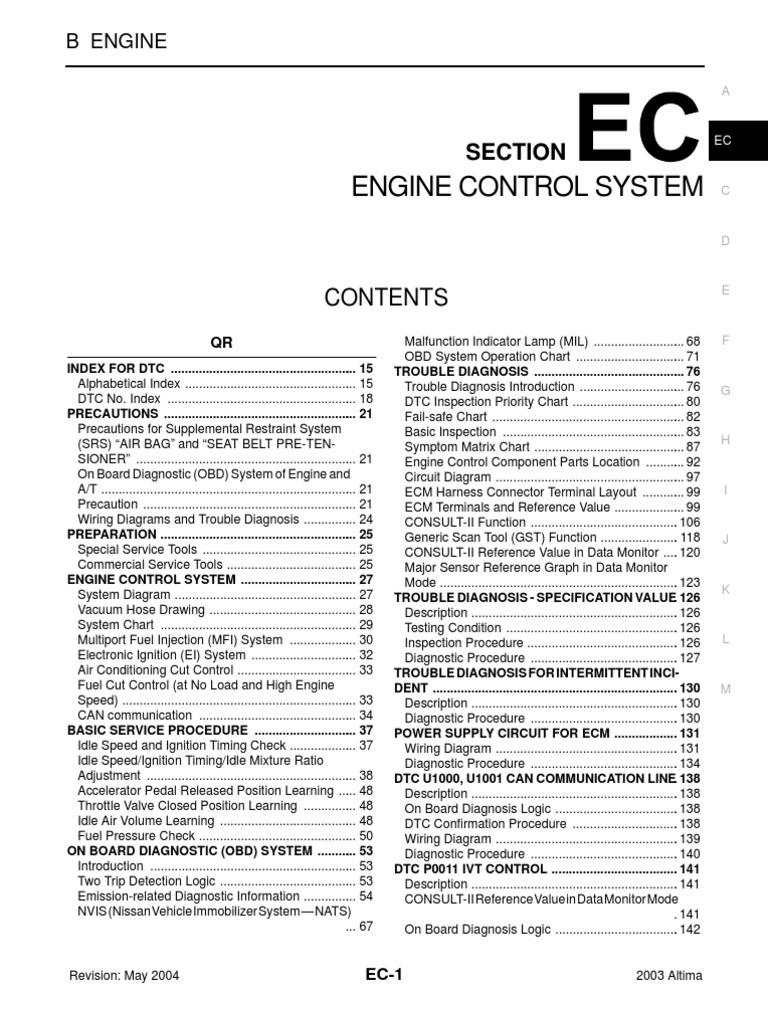 2003 Nissan Altima 2.5 Serivce Manual EC | Medical Diagnosis | Hvac