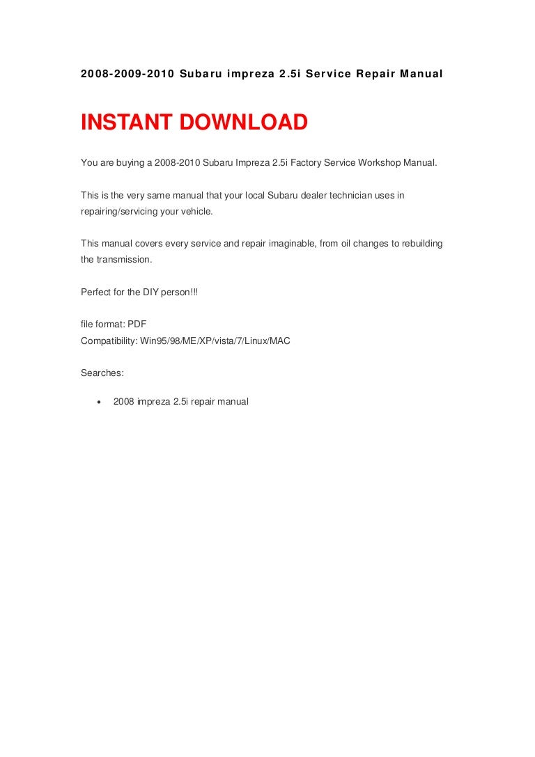 2008-2009-2010 Subaru impreza 2.5i Service Repair Manual