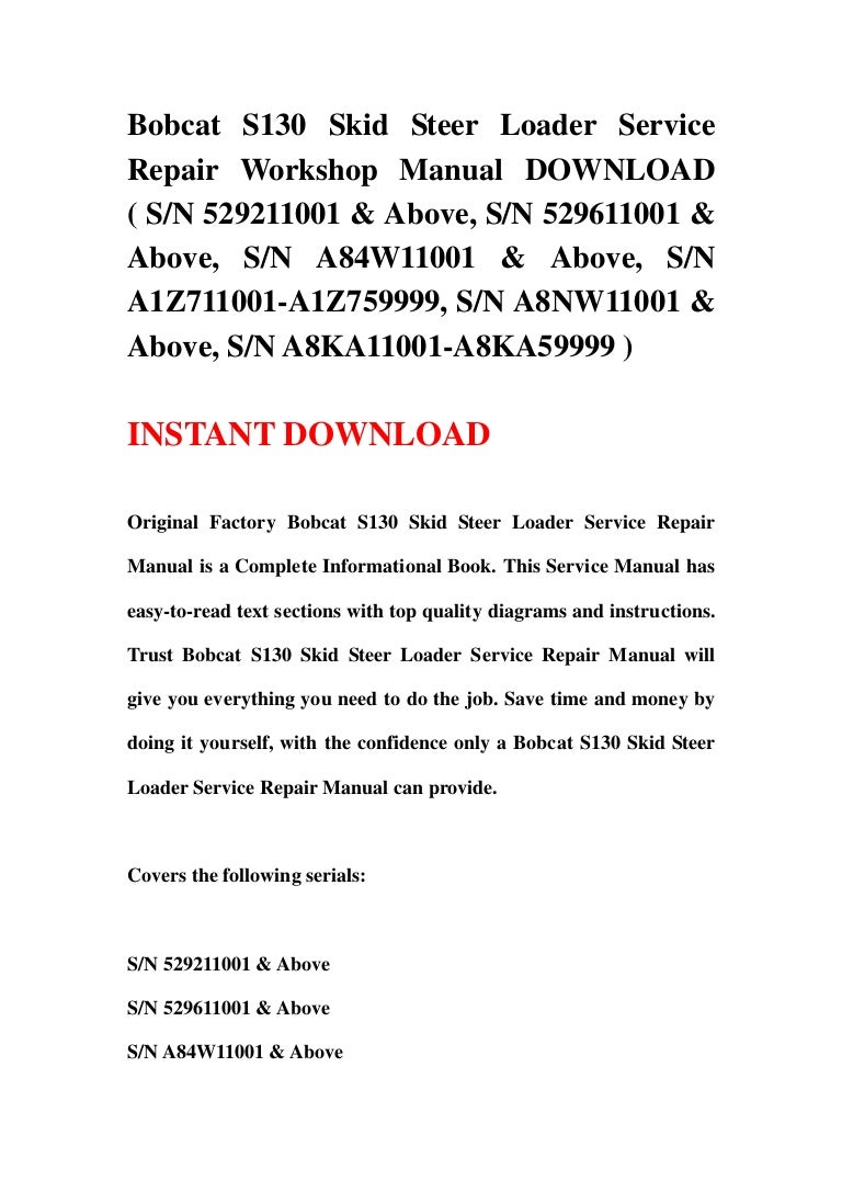 Bobcat S130 Skid Steer Loader Service Repair Workshop Manual DOWNLOAD…