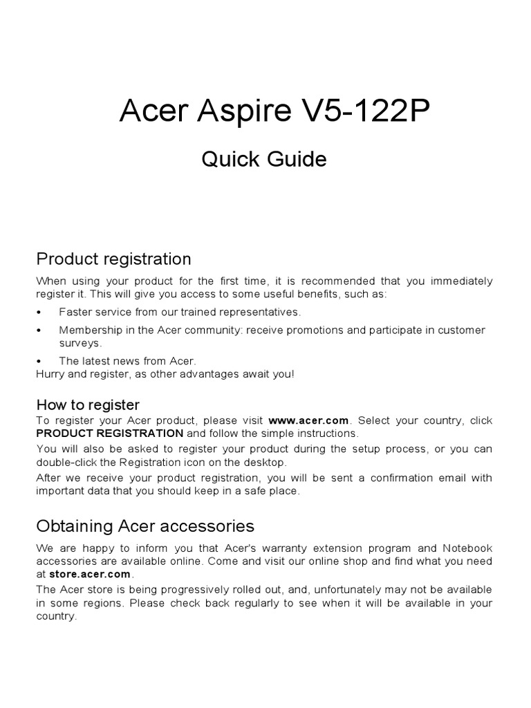 Acer Aspire v5-122p Quickstart Manual | Computer Keyboard | Usb