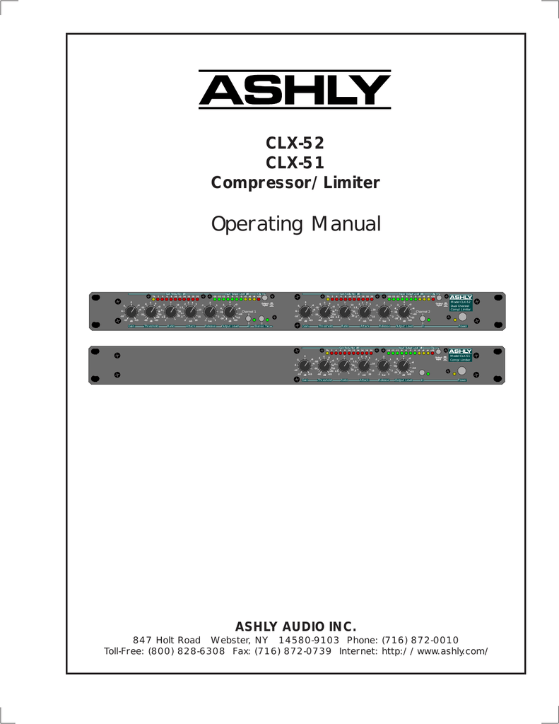 Ashly CLX-52 Dual Compressor/Limiter 1U Manuals & Resources. ASHLY CLX-52 ...