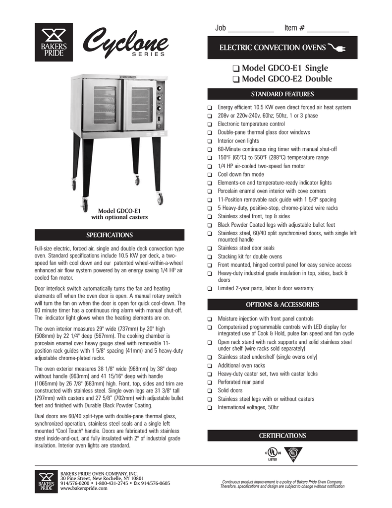 03.11.2018 · Shop Bakers Pride GDCO-E2 Cyclone Convection Oven Fast shipping & best prices guaranteed! Commercial Kitchen & Restaurant Equipment at CKitchen.com. Cyclone Convection Oven, full-size, electric. bakers pride bpcv 1 owner s manual pdf download view and download bakers pride bpcv 1 owner s manual online convection oven bpcv 1 oven pdf manual also for bpcv 1 2w bpcv 2 1w bpcv 1 1w bakers pride bco g1 install and operation instructions view and download bakers pride bco g1 install and operation instructions online gas convection ovens. Bakers Pride BPCV-E2 Convection Oven, Electric Convection Oven, electric, double deck, bakery depth, (2) 1/2 hp two speed fans, electronic temperature controls, interior lights, porcelain interior, stainless steel exterior, 22kw, ETL.