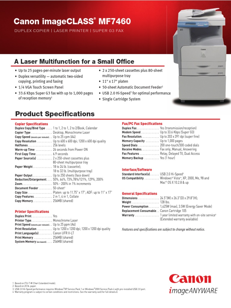 Canon MF7460 Brochure | Printer (Computing) | Fax