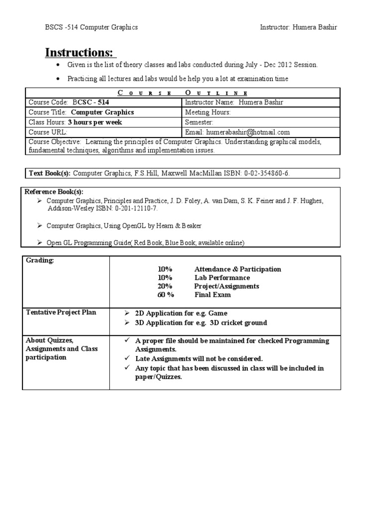 Course Outline | 2 D Computer Graphics | Computer Graphics
