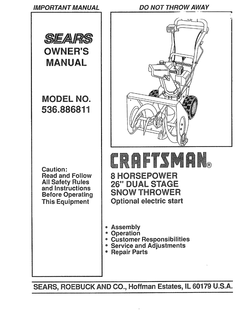 Craftsman 8 26 snowblower manual by vssms4 - issuu