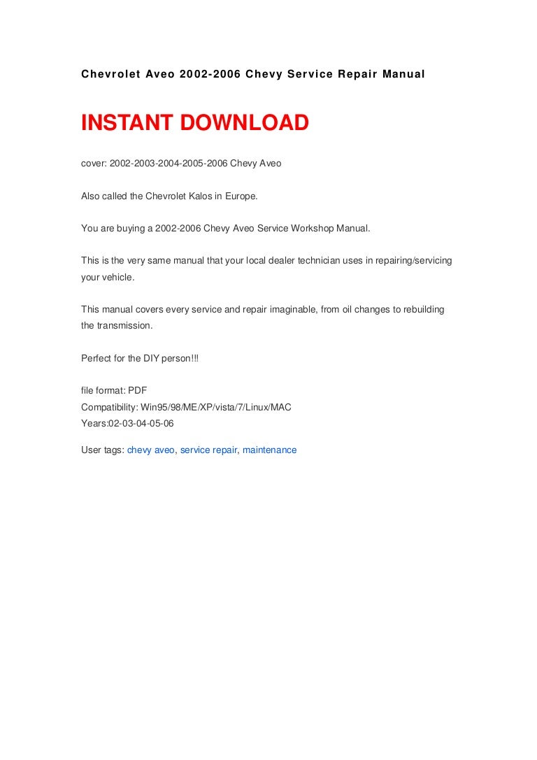 Calaméo - Chevrolet Aveo 2002-2006 Chevy Repair Manual Chevrolet Aveo 2002-2006 Chevy Repair Manual