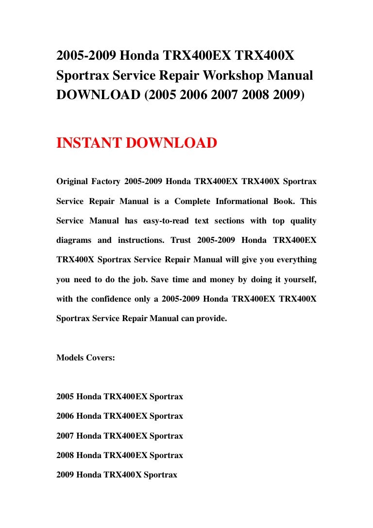 2005-2009 Honda TRX400EX TRX400X Sportrax Service Repair Workshop Man…