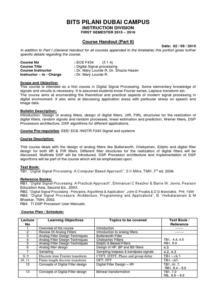 ECE F434 Digital Signal Processing I Sem 15-16 HO | Digital ...