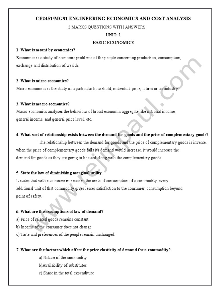 Two Marks Eefa | Demand | Price Elasticity Of Demand