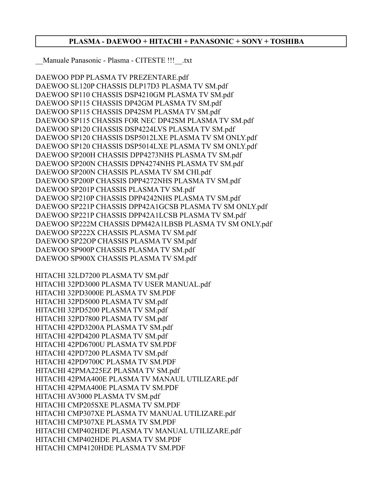 DAEWOO + HITACHI + PANASONIC + SONY + TOSHIBA | manualzz.com