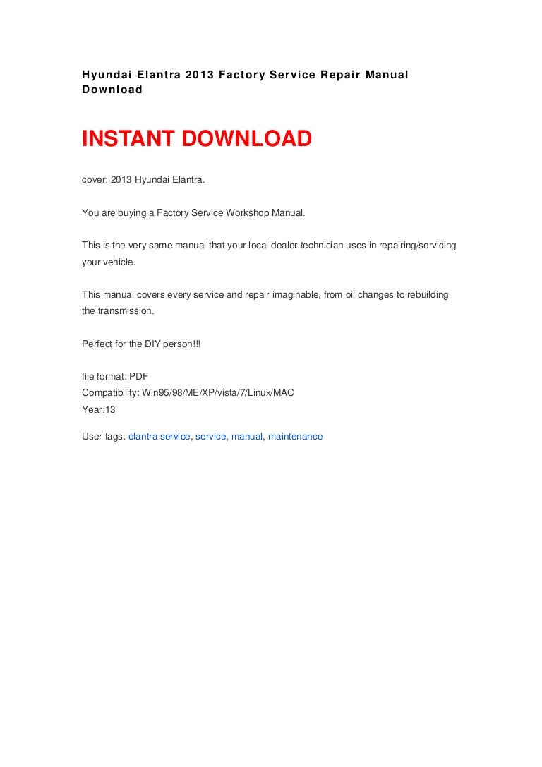 Hyundai Elantra 2013 Factory Service Repair Manual