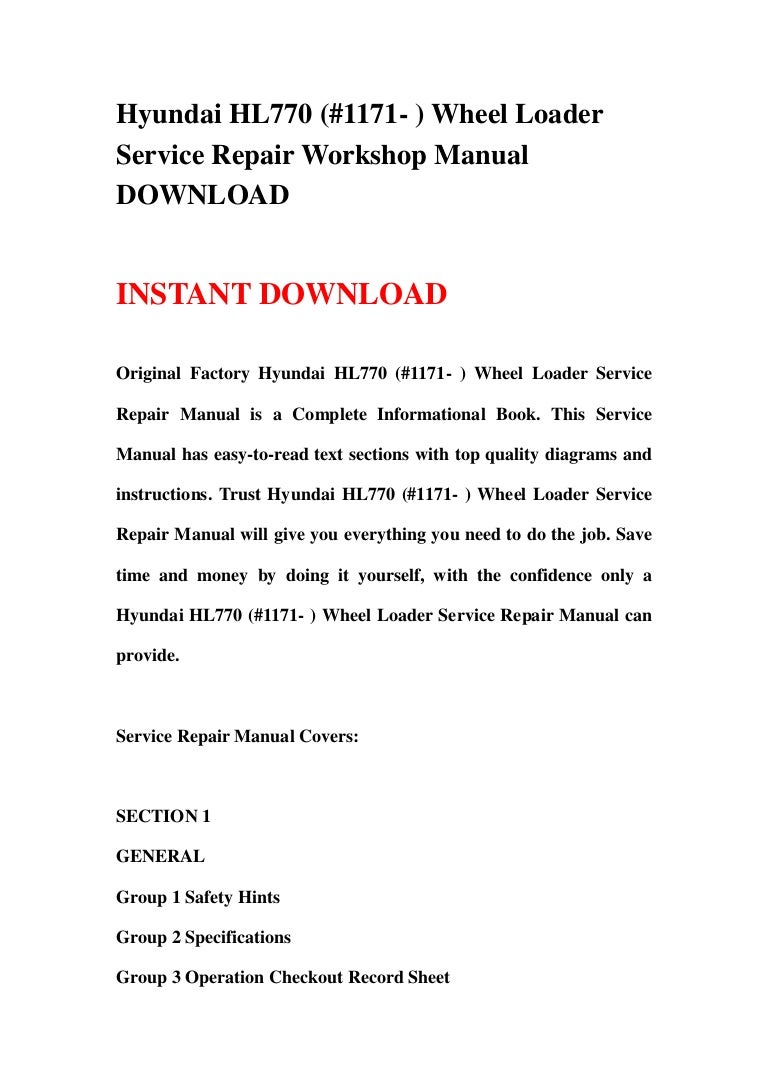 Hyundai HL770-9 Wheel Loader Service Repair Manual Download This is the most complete service repair manual for the Hyundai HL770-9 Wheel Loader. This manual contains service,repair procedures,assembling,disassembling, wiring diagrams and everything you need to know.. Related Book Ebook Pdf Hyundai Hl770 7 Wheel Loader Operating Manual : - Srm Manual Dual Line Head - Srijan Lab Manual 10 Science - Srm Structure Repair Manual A320. Hyundai Hl757tm 9 Wheel Loader Operating Manual Download Free hyundai wheel loaders hl757tm 9 operating manual , this manual covers the repairs of hyundai wheel loaders hl757tm 9 operating automobiles which have been involved in accidents, and it describes the work related to the replacement of damaged body parts. Hyundai wheel loader hl757tm 9 operating manual download , hyundai wheel loader.