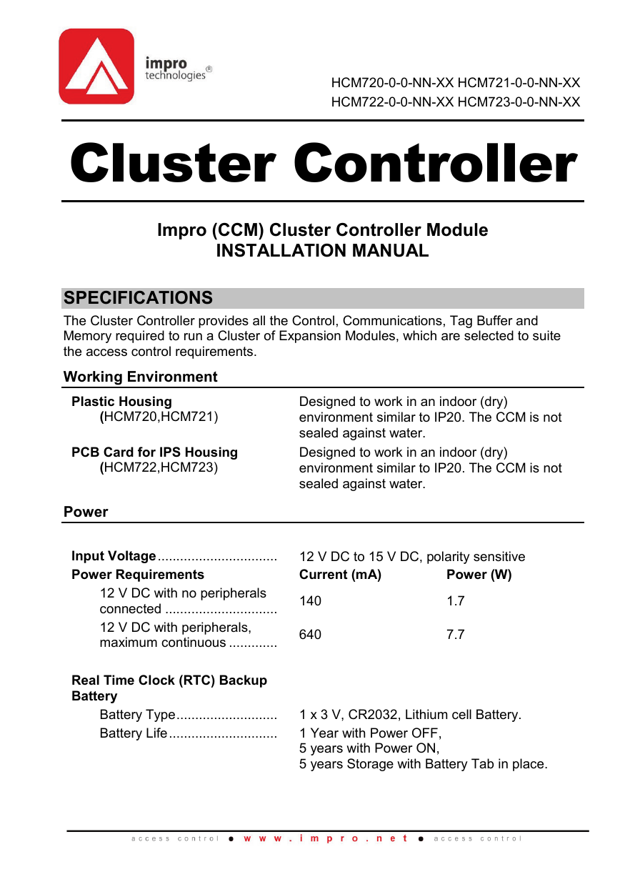 Impro Access Control Wiring Diagram - This product conforms to our Guarantee or Warranty details placed on our Web Site, to read further please go to www.impro.net. USER NOTES ISC304-0-0-GB-06 Page 20 This manual is applicable to the ImproX IXP20 Controller, ISC920-0-0-GB-03 and ISC921-5-0-GB-03. (The last two digits of the Impro stock code indicate the issue status of the product).. Apr 18, 2003 · The Impro IXP 200 system provides not only flexible access control to meet a wide range of requirements, but also facilitates building management and lift control. Furthermore, the system can be linked to an intruder alarm to provide 24-hour integrated overall control of small-to-medium sized. Controller Modules WIEGAND CLUSTER Access Portal range of products from Impro Technologies, the Impro Wiegand Cluster consists of the Cluster Controller Module (CCM) and one or more Wiegand Reader Modules (WRM) that can be clustered together. This modular approach to access control makes is very easy to adapt and grow your system to suit.2011 chevy malibu wiring diagram impro access control wiring diagram basic motor control wiring diagram 2012 ford f 350 tail light wiring diagram hilux spotlight wiring diagram jeep jk light wiring diagram control wiring diagram symbols control wiring diagram for dol starter ford 8n light wiring diagram yamaha r6 tail light wiring diagram 240v. BPT IXP220 - PC Based 2 Door Access Control Kit Including 10 Fobs. The Impro IXP220 is a fully featured, PC based door access control security System which controls up to 256 doors and up to 10,000 tags per system across 1000 sites.. Devices where access control is required and where users clock on and off throughout the day. MorphoManager also works with Morpho 3D Face Readers to capture users facial traits. Support.