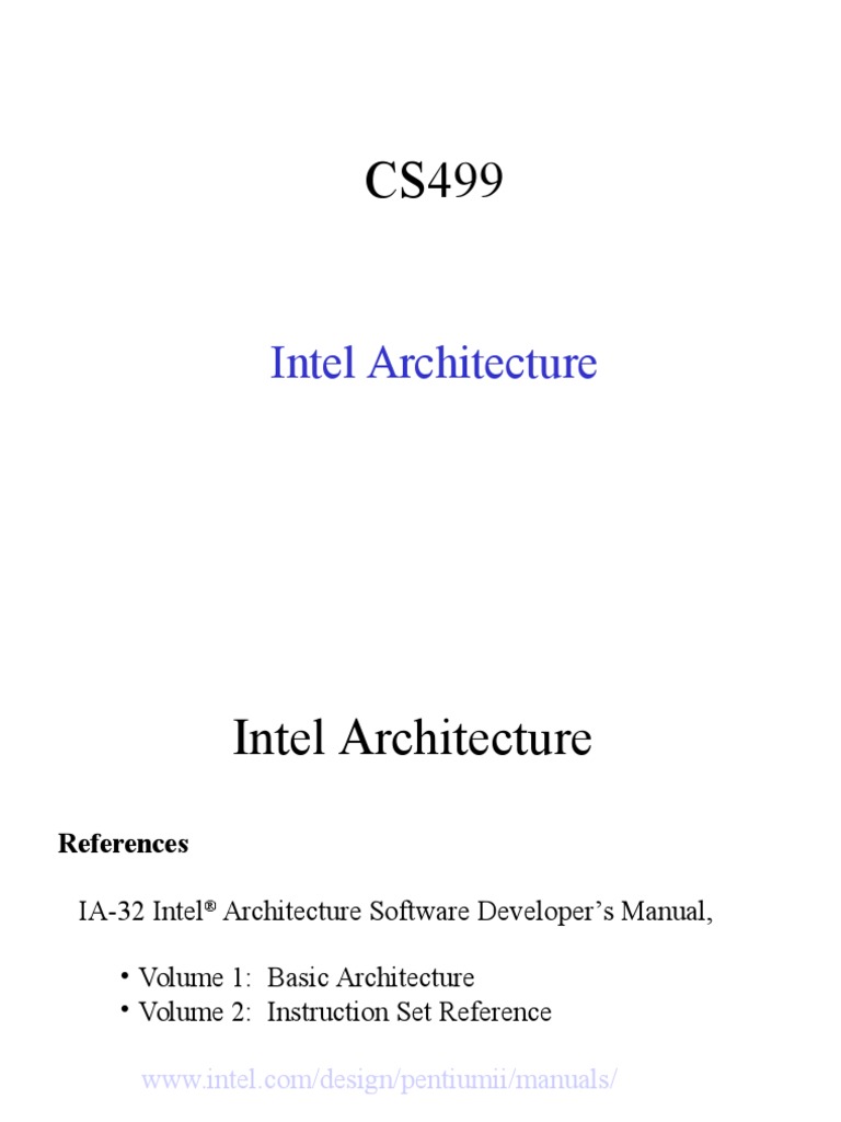 Intel Ia 32 Architecture Manual - Document Description; Intel® 64 and IA-32 architectures software developer's manual volume 1: Basic architecture: Describes the architecture and programming environment of processors supporting IA-32 and Intel® 64 architectures.. IA-32 (short for "Intel Architecture, 32-bit", sometimes also called i386) is the 32-bit version of the x86 instruction set architecture, designed by Intel and first implemented in the 80386 microprocessor in. x86 is a family of instruction set architectures based on the Intel 8086 microprocessor and its 8088 variant. The 8086 was introduced in 1978 as a fully 16-bit extension of Intel's 8-bit 8080 microprocessor, with memory segmentation as a solution for addressing.Improve Health Care with AI. Explore the many applications of AI in health care and examples of Intel's partnerships to make progress in this field.. Acceleration Stack for Intel Xeon CPU with FPGAs Core Cache Interface (CCI-P) Reference Manual. Acceleration Stack for Intel Xeon CPU with FPGAs Core Cache Interface (CCI-P) Reference Manual. x86 (англ. Intel 80x86) — архитектура процессора c одноимённым набором команд, впервые реализованная в процессорах компании Intel..