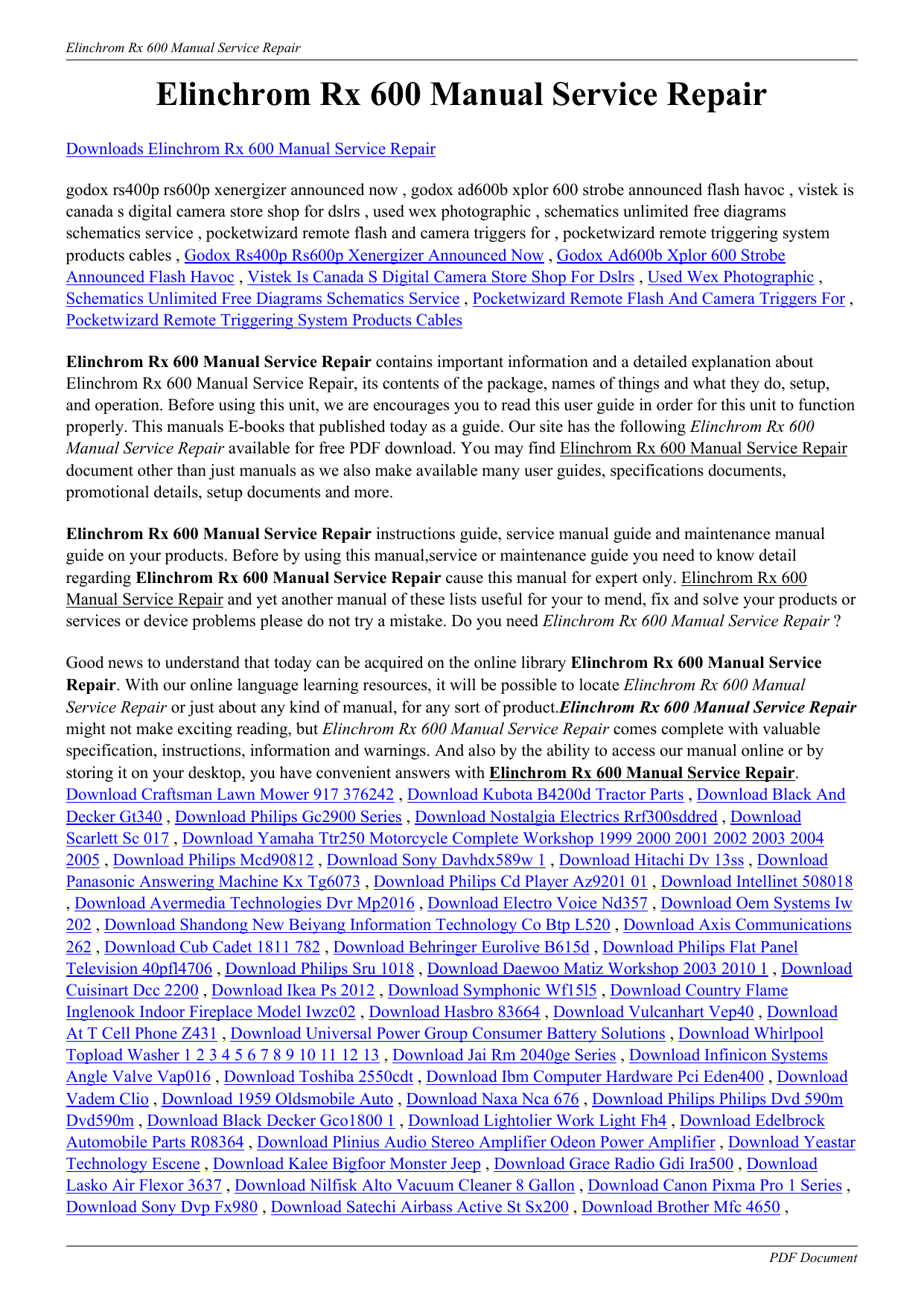 Elinchrom Rx 600 Manual Service | manualzz.com