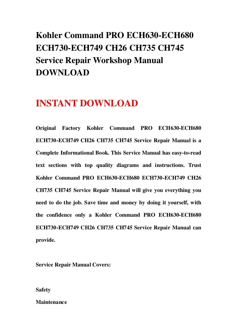 Kohler command pro ech630 ech680 ech730-ech749 ch26 ch735 ...