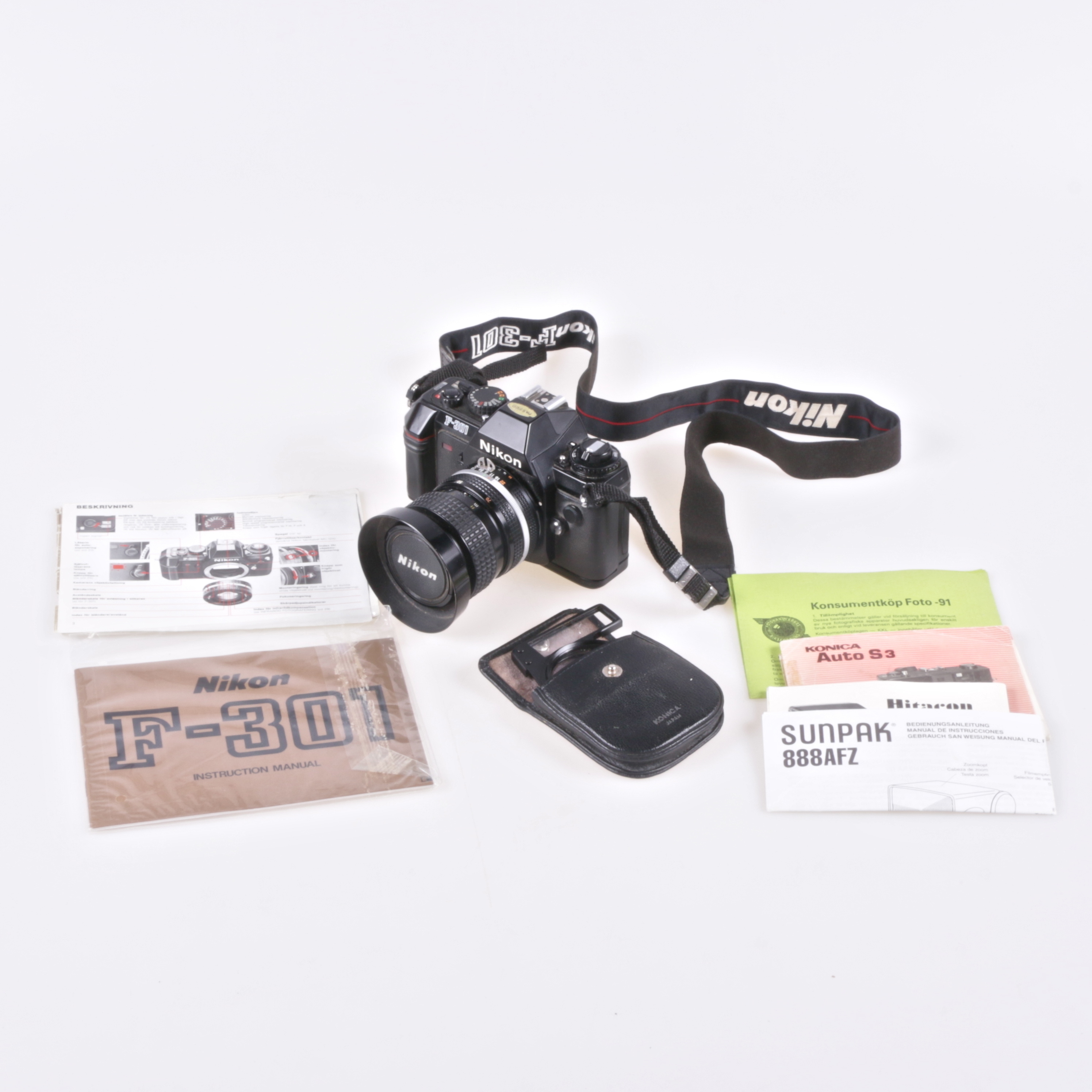 KAMERA, Nikon F-301 med tillbehör, 1980-tal. Photo, Cameras ...