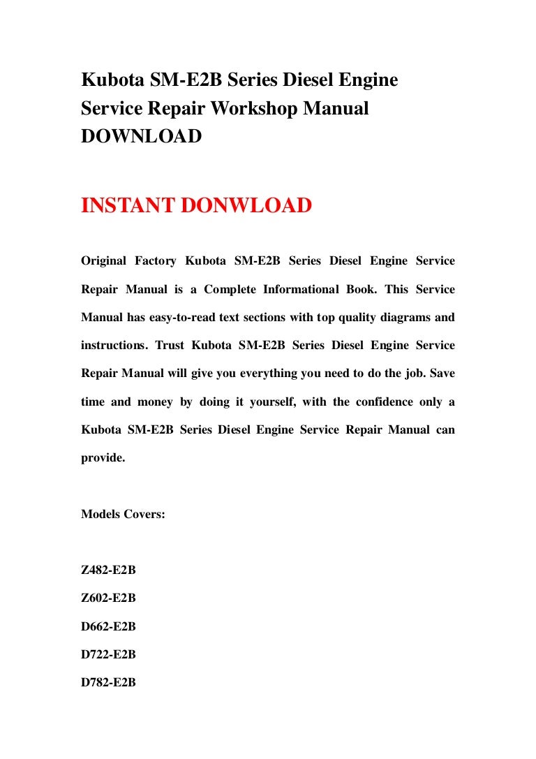 Kubota SM-E2B Series Diesel Engine Service Repair Workshop Manual DOW…