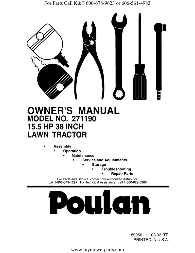 MODEL NO. 271190 15.5 HP 38 INCH LAWN TRACTOR | manualzz.com