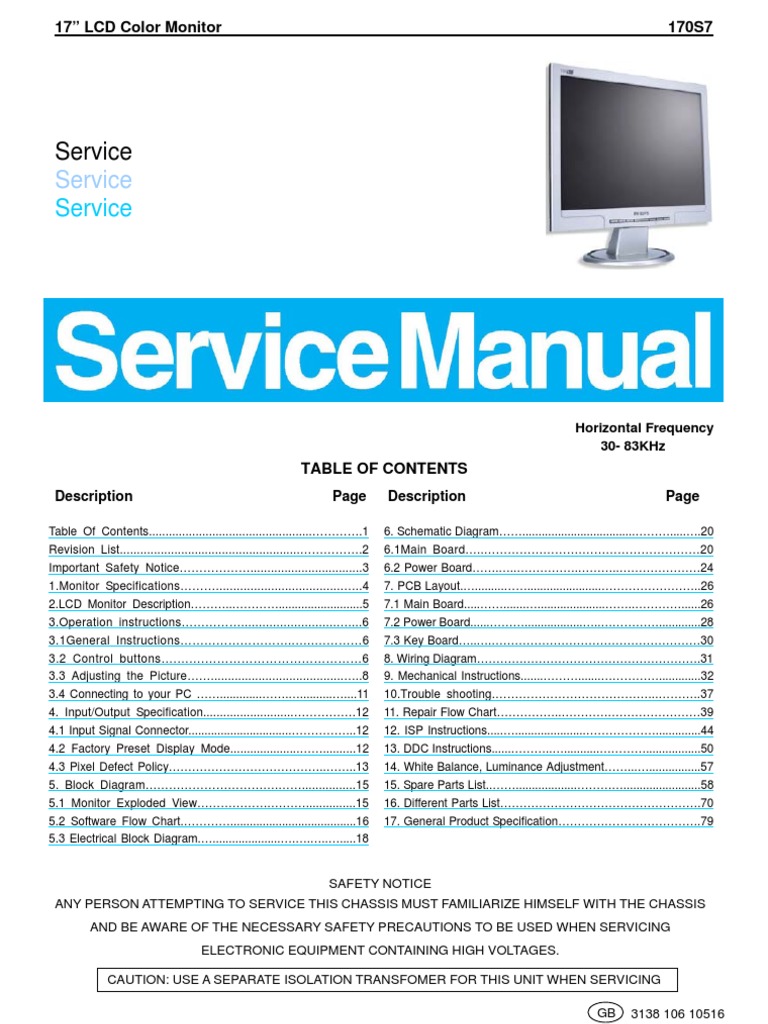 Philips LCD Monitor 170S7 service manual | Computer Monitor | Video