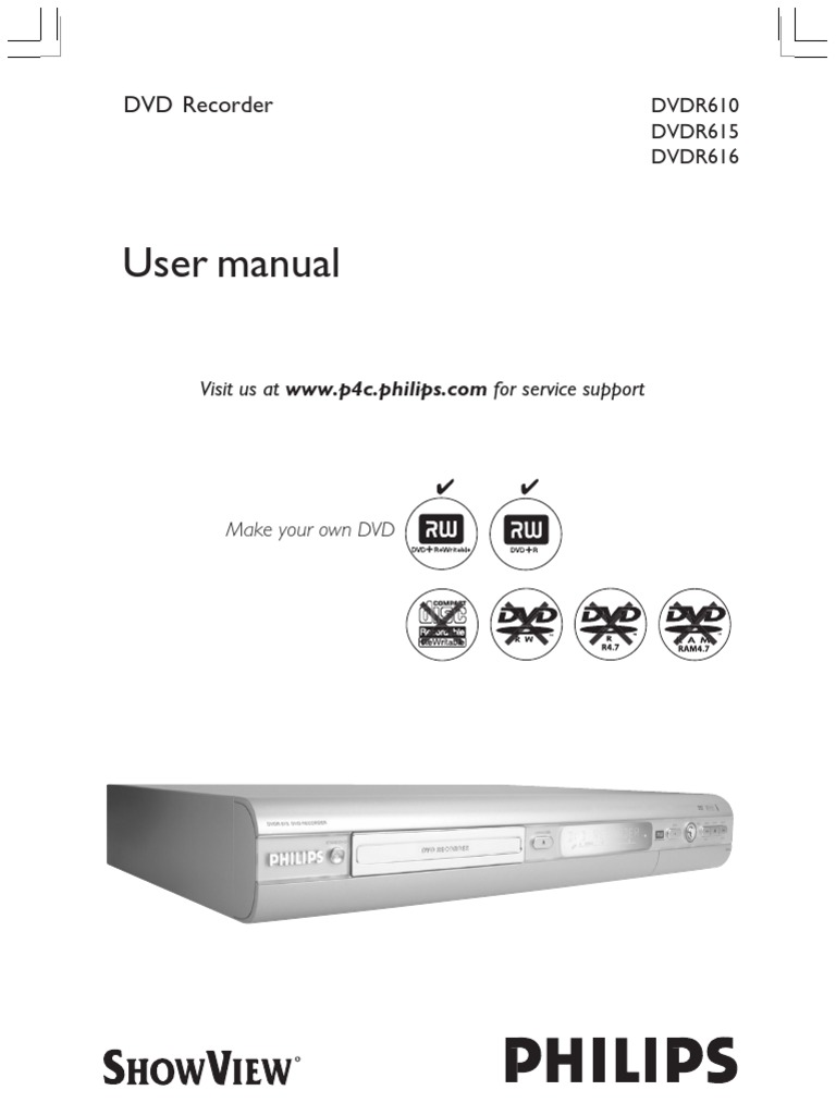 Manual Dvdr 615 Philips | Display Technology | Media Formats