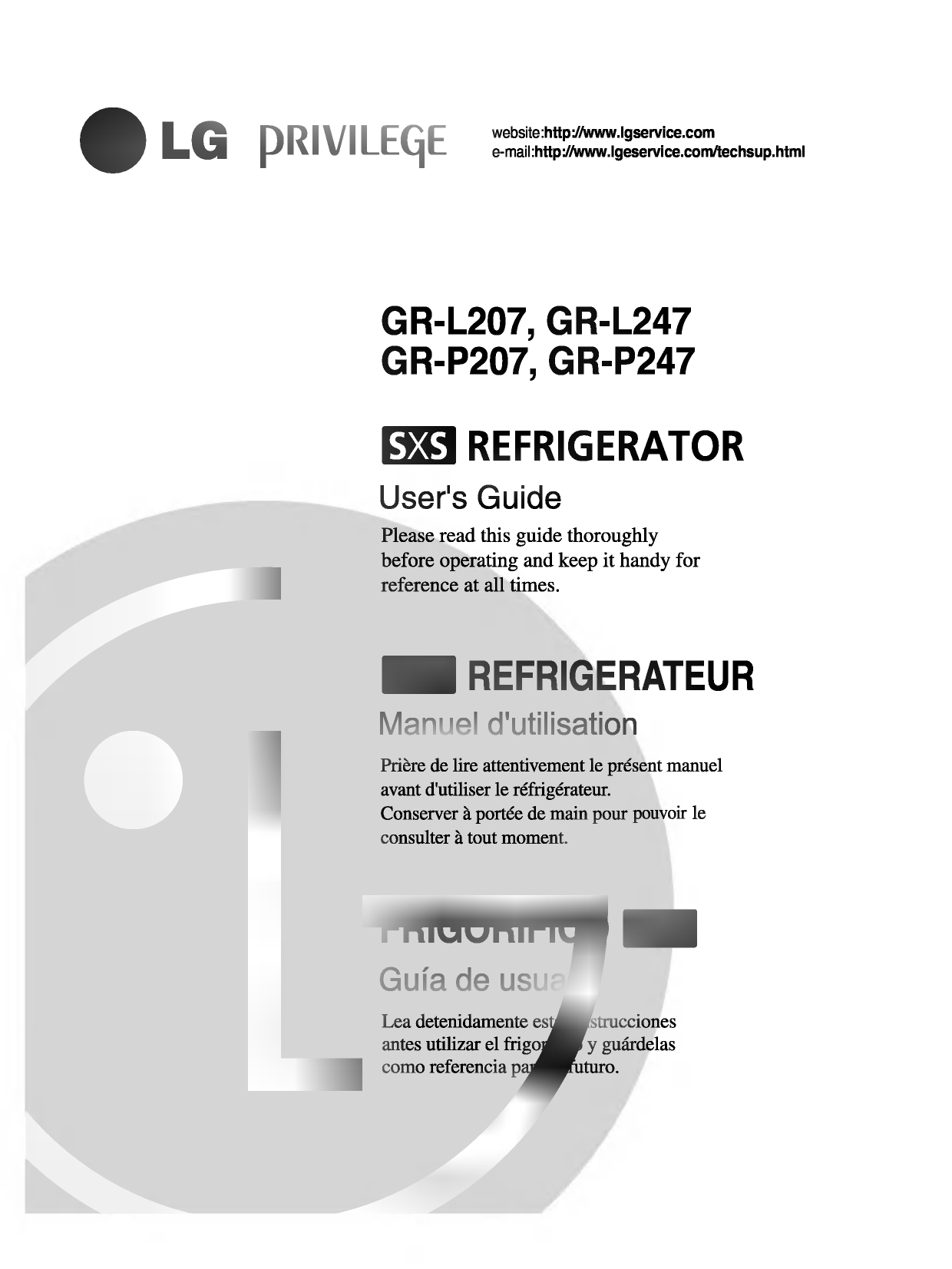 Lg Gr P247 Gr P207 Refrigerator Service Manuals - By pressing 'print' button you will print only current page. To print the manual completely, please, download it.. View and Download LG GR-L247 manual online. GR-L247 Refrigerator pdf manual download. Also for: Gr-l207..