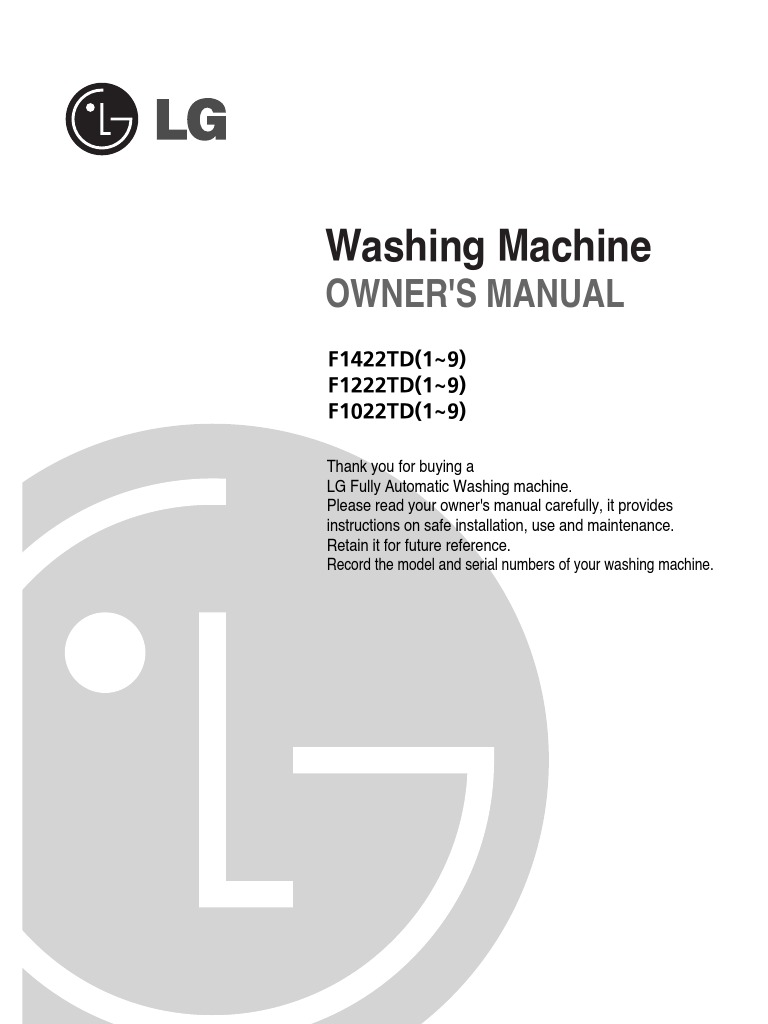Lg Wd 1238c Owners Manual - LG F1402FDS6 Manuals & User Guides. User Manuals, Guides and Specifications for your LG F1402FDS6 Washer. Database contains 1 LG F1402FDS6 Manuals (available for free online viewing or downloading in PDF): Owner's manual .. LG WD-143605TD Service Manual Service manual (34 pages) LG WD-1238C Service Manual Service manual (35 pages) Maytag LAT3500 User's Manual Operation & user’s manual (28 pages) Miele SOFTTRONIC W 1113 Operating Instructions Manual Operating instructions manual (56 pages) Miele WS 5426 MC 13 Operating And Installation. Laundry manuals and free pdf instructions. Find the user manual you need for your laundry appliances and more at ManualsOnline. Free Samsung Washer User Manuals | ManualsOnline.com.A.I found the easiest way to fit the part was with a pair of pointy nosed pliers to stretch the spring while easing it over the rubber gasket and pushing the clamp home with your fingers. to fit all the parts you need pointy nose pliers philips head screw driver flat blade screw driver and a socket set I would also recommend buying the service manual as it takes the guesswork out of dis. Lg Wm2016cw Service Manual INTRODUCTION : #1 Lg Wm2016cw Service ## eBook Lg Wm2016cw Service Manual ## Uploaded By Harold Robbins, view and download lg wm2016cw service manual online washing machine model wm2016cw wm2016cw washer pdf manual download also for wm2277h wm2077cw wm2377c wd get product support user manuals and. FREE Service Manual WD-1485TDA.pdf DOWNLOAD Size 16.3 MB LG | Washing Machine - Page 10. Search. Service Manuals | Lg | Washing Machine | WD-1485TDA. WD-1485TDA - LG Washing Machine Service Manual (repair manual). Page 10. Read LG WD-1485TDA Service Manual online. 9. Connect Drain Hose. 6. Connect power plug. 7. If the drain hose is not.