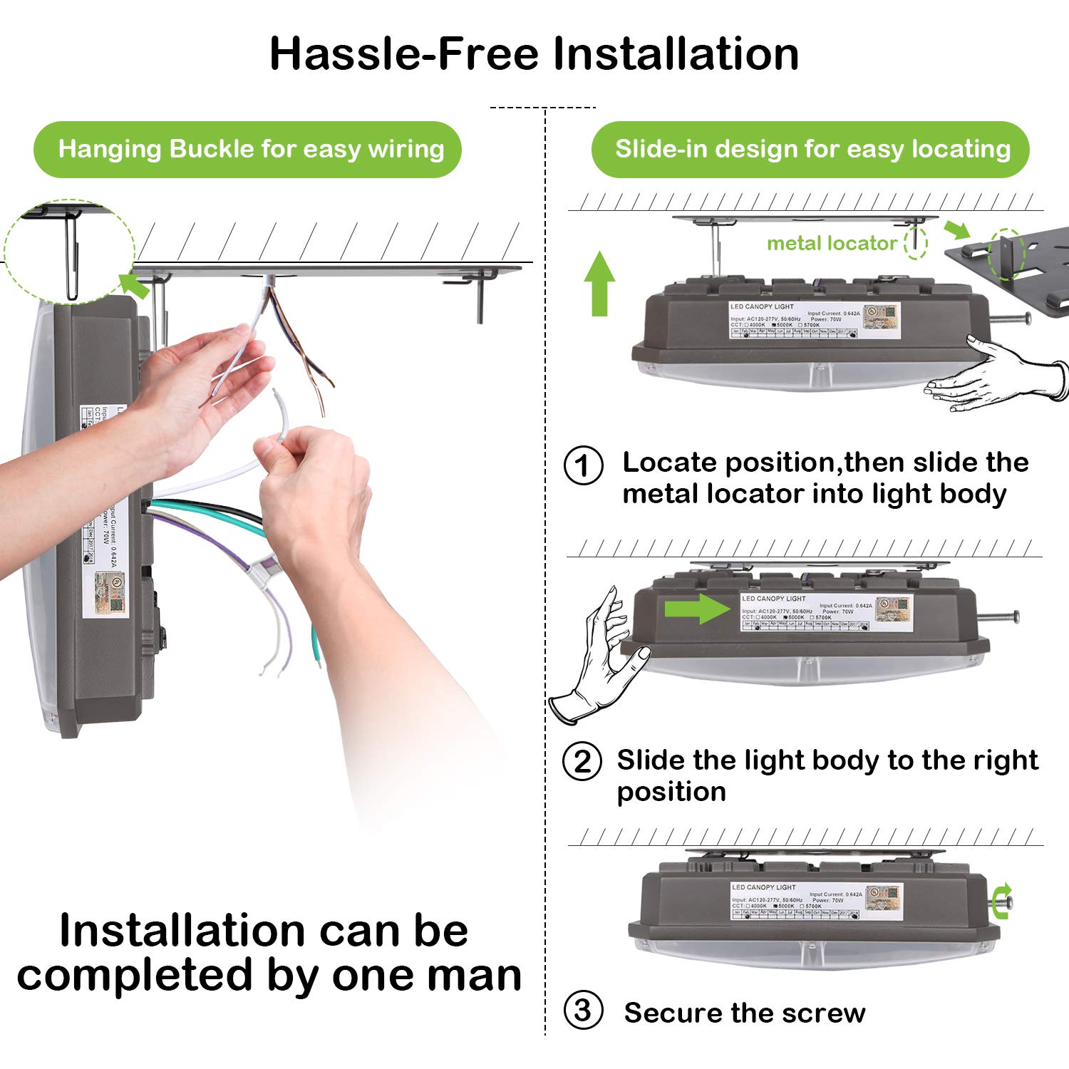 Hykolity 70W LED Canopy Light, 8400lm Outdoor LED Parking Garage Lights, Wet Rated Low Bay Soffit Lighting Fixture for Apartment Carport, 5000K, 1-10V ...