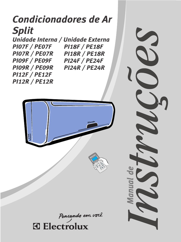 Manuals Electrolux Ar Condicionado Split - Electrolux QI09R Ar condicionado. Necessita de um manual para a sua Electrolux QI09R Ar condicionado? Abaixo você pode ver e baixar o manual em PDF gratuitamente. Também há perguntas frequentes, uma classificação do produto e um feedback dos usuários para permitir que você use seu produto de maneira ideal.. Os aparelhos de ar-condicionado inverter são eficientes, silenciosos e econômicos. A tecnologia Inverter oferece maior eficiência na redução dos gastos com energia elétrica, contribuindo na redução do consumo de energia tanto no ciclo de refrigeração quanto no de aquecimento. Adequados para aqueles que estão buscando máxima refrigeração para os ambientes do seu lar.. Ar-condicionado e seu manual de limpeza Veja formas corretas para a limpeza de seu ar-condicionado. + leia mais. Chega de calor: tipos de ar-condicionado Ar Condicionado Split Hi Wall Electrolux Ecoturbo 22.000 BTU/h Quente e Frio 220 Volts. por. R$ 2,617.80 à.Encontre Manual Controle Remoto Ar Condicionado Split Electrolux - Para Ventilação Controles Remotos no Mercado Livre Brasil. Descubra a melhor forma de comprar online.. Quais as vantagens do Ar Condicionado de Janela Manual Electrolux? A Electrolux possui aparelhos de refrigeração com design moderno e alta tecnologia para refrigerar ambientes de maneira rápida e econômica. O ar de janela Electrolux tem instalação facilitada, porque dispensa molduras e se encaixa perfeitamente na decoração do ambiente.. O ar condicionado Split Inverter Techno Electrolux economiza até 40% de energia, sem diminuição da eficiência e da potência do aparelho. Devido ao sistema de velocidade variável de seu compressor, o modelo alcança a temperatura selecionada em menos tempo e consegue mantê-la constante, sem precisar ligar e desligar o aparelho durante a programação..