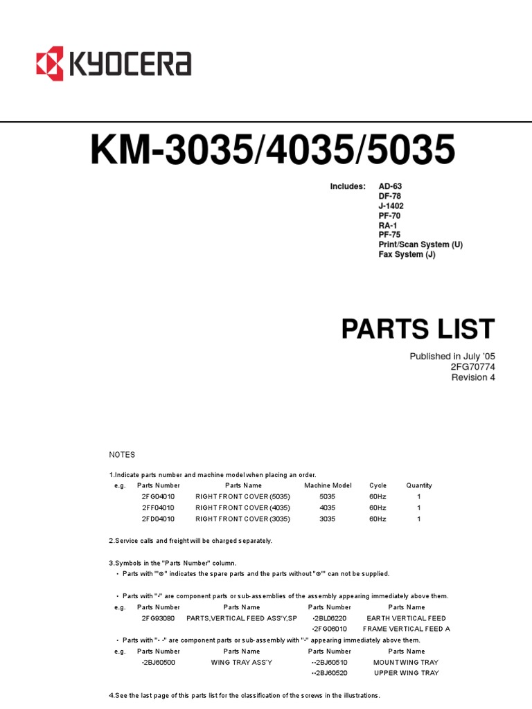 Manuals Kyocera Mita Km 3035 - Manual & Guides - Product User Manuals & Troubleshooting Guides. Products and names mentioned are the property of their respective owners.. Read and download Kyocera Copier KM 3035 User's Manual online. Download free Kyocera user manuals, owners manuals, instructions, warranties and installation guides, etc.. SRmanuals is scanned from original paperback copy of the Kyocera Mita KM 3035 Service Manual and are guaranteed for high quality scans We have tried utmost care to make sure completeness of manual..Free Download Books Kyocera Mita Km 3035 Km 4035 Km 5035 Service Repair Manual Everybody knows that reading Kyocera Mita Km 3035 Km 4035 Km 5035 Service Repair Manual is helpful, because we are able to get information from the reading materials.. Service Manual KYOCERA MITA KM-3035/4035/5035; Parts Guide Service Manual KYOCERA MITA KM-3035/4035/5035; This service manual, is the full KYOCERA MITA KM-3035/4035/5035 Service Repair Manual.. Kyocera Mita Km 3035 4035 5035 Parts List Manual. DOWNLOAD HERE. Official Kyocera Mita parts list manual for the KM 3035, KM 4035 and KM 5035 photocopiers..