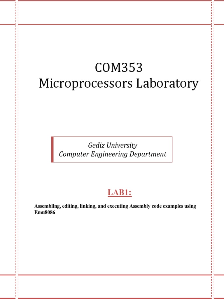 COM353 Lab1 Lab Sheet | Source Code | Assembly Language