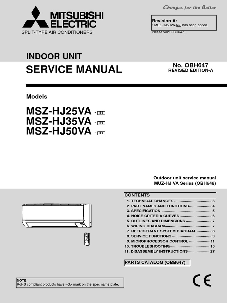 SERVICE MANUAL INDOOR UNIT - PDF MSZ-GE35VA - A1 MSZ-GE71VA - A1 MSZ-GE35VA2 - A1 MSZ