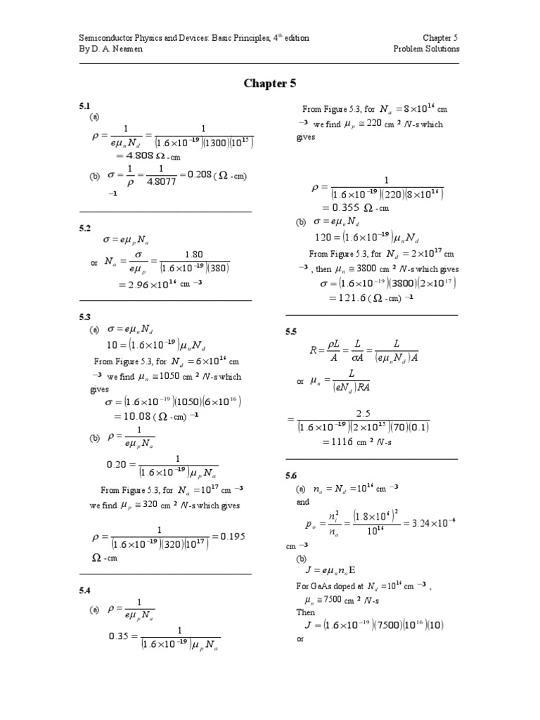 Neamen Introduction To Semiconductor Devices Solution Manual - A semiconductor material has an electrical conductivity value falling between that of a metal, like copper, gold, etc. and an insulator, such as glass.. How is Chegg Study better than a printed student solution manual from the bookstore? Our interactive player makes it easy to find solutions to problems you're working on -. Electromotive force (emf) is a measurement of the energy that causes current to flow through a circuit. It can also be defined as the potential difference in charge between two points in a circuit..