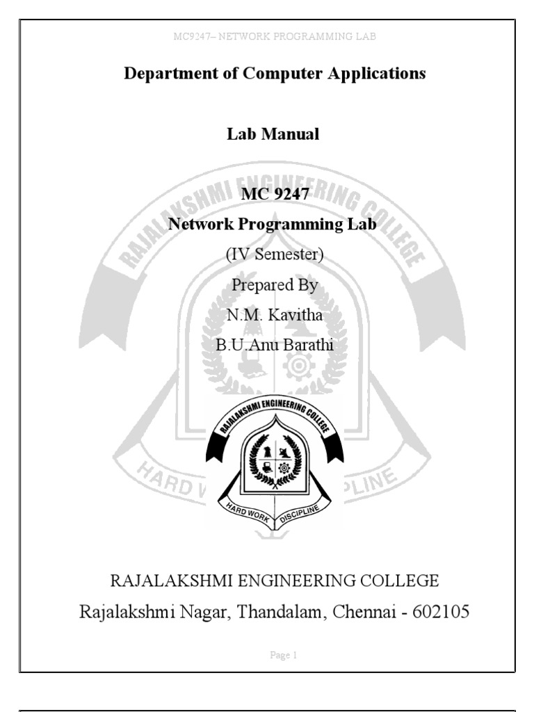 Network Programming Mca Lab Manual - A. Auto Cad. Advanced English Communication Skills (AECS) Lab Manual (Copy 1) Advanced English Communication Skills (AECS) Lab Manual (Copy 2) Analog and Digital IC Applications Lab. vtu c programming lab manual pdfc programming lab manual vtu 2018c programming lab manual vtu 18cpl17 vtu c programming lab pdfvtu syllabus 2019 cbcs be/b.tech/mba/mca (i to. JNTU World JNTU WORLD Results, jntu fast Updates, , materials,lab manuals,question papers,jntua jntuk jntuh JNTUWORLD.COM for JNTU Hyderabad JNTU Kakinada.LAB MANUALS QUESTION BANK SAT & CYCLE Q&A CONTACT ME CASE TOOLS LAB MANUAL. case_tools_lab.doc: File Size: 359 kb: File Type: doc: Download File . CASE TOOLS UNIVERSITY QUESTIONS. mc9248_set1.pdf: File Size: 25 kb: File Type: pdf: Download File. mc9248_set2.pdf: File Size: 52 kb: File Type: pdf: Download File. SPM LAB MANUAL. mca_sem5_mc9255lm.doc: File Size: 261 kb:. Download ebooks tagged with Web Programming Lab Ebook Title Abstract Author; Mc9247 Network Programming Lab Laboratory Manual For : Dr.NNCE MCA/IV Sem Network Programming -LM .. Advanced Java Programming Lab Manual programming lab manual advanced java programming lab manual answers for network programming lab manual java se 7 programming student guide pdf..