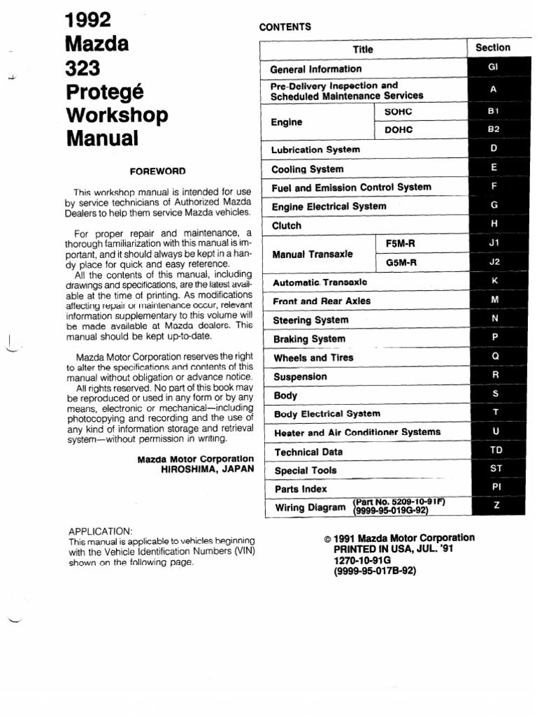 1989-1994 Mazda 323 Protege BG Factory Service Repair Manual 1990 ... 1989-1994 Mazda 323 Protege BG Factory Service Repair Manual 1990 1991 1992 1993 by ion ion - issuu