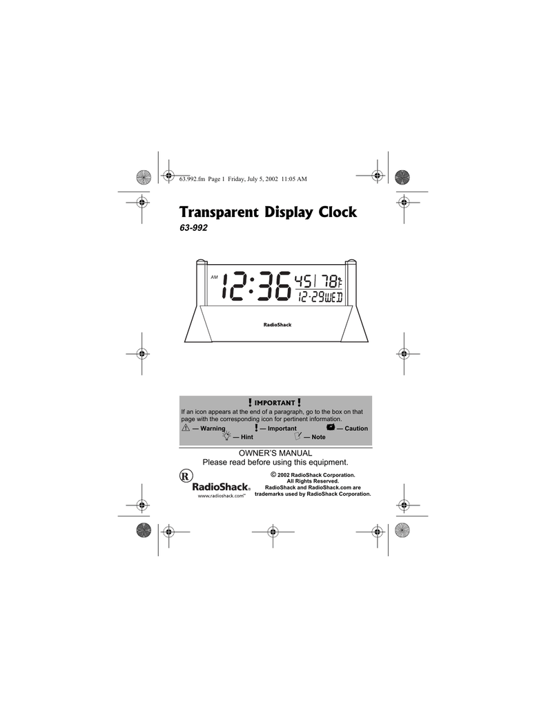 Radio Shack 63-992 User's Manual | manualzz.com