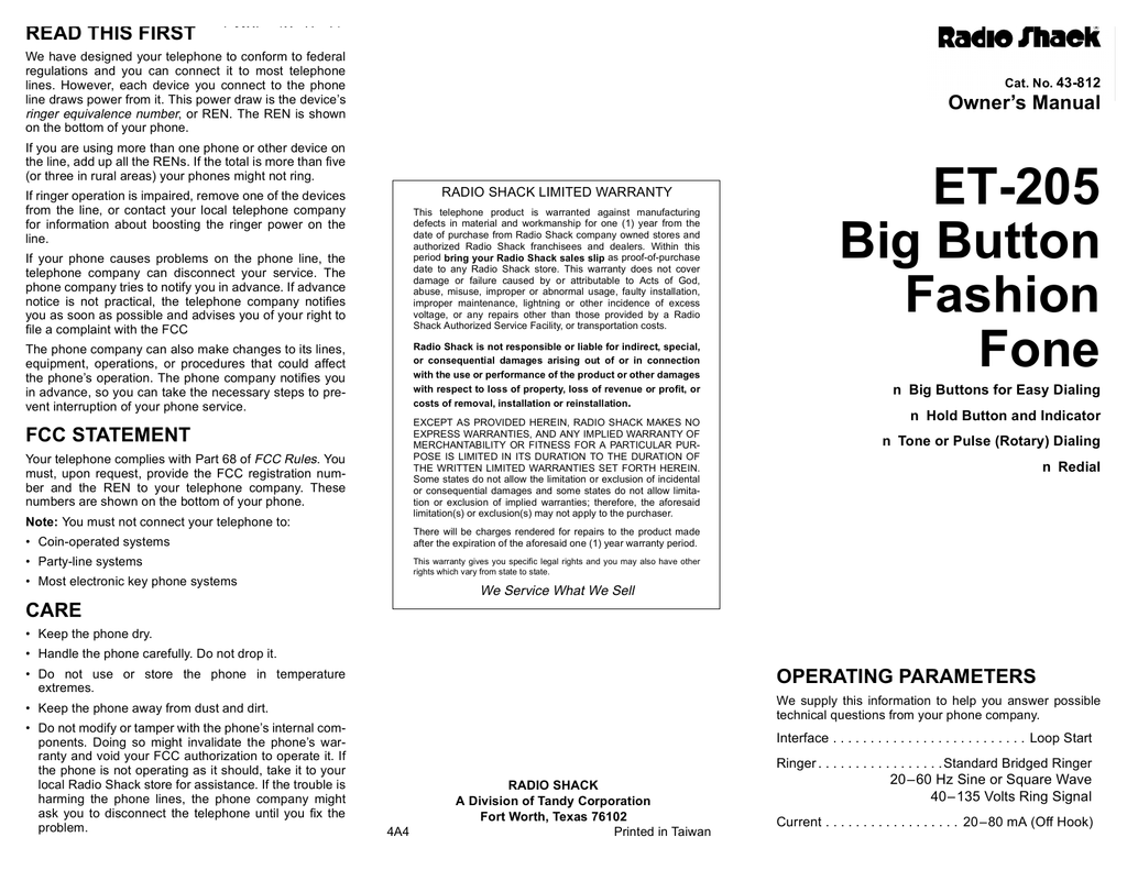 Radio Shack ET-205 User's Manual | manualzz.com