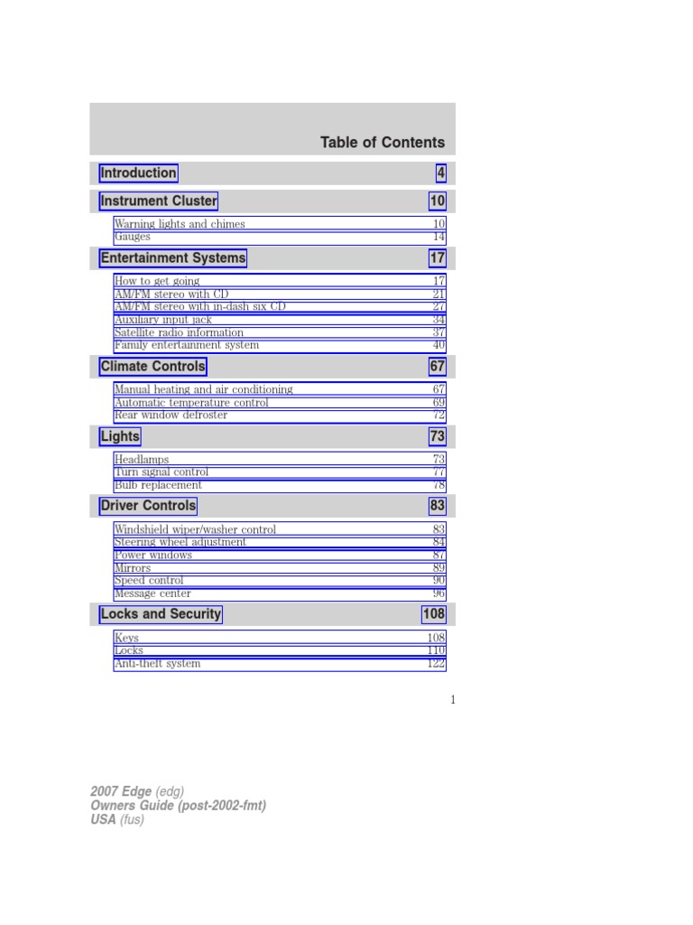 2007 Ford Edge Owners Manual | Seat Belt | Compact Disc
