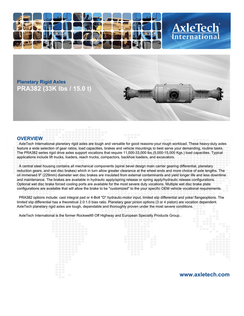 PRA382 (33K lbs / 15.0 t) Planetary Rigid Axles OVERVIEW | manualzz.com