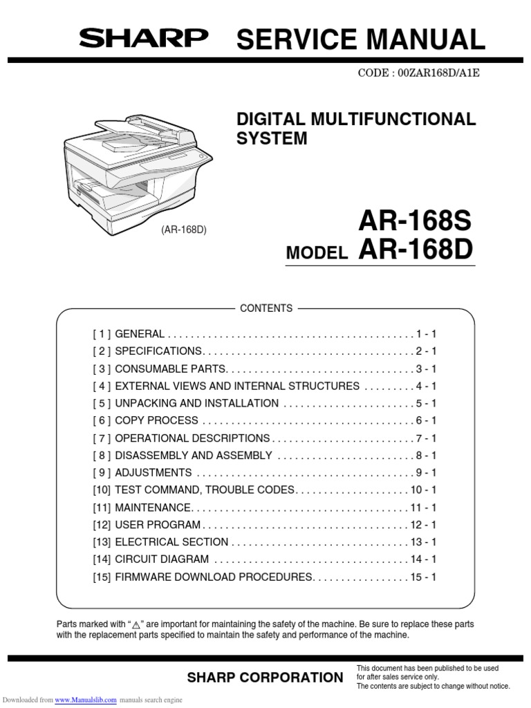 Sharp AR 168S 168D Service Manual | Photocopier | Image Scanner