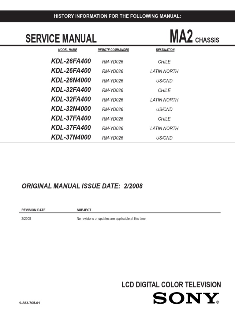 Sony Kdl 26fa400 Service Manual Repair Guide - Welcome to getMANUAL.com on-line store! We sell electronic versions of service and user manuals, part lists, schematic diagrams for home and professional audio.