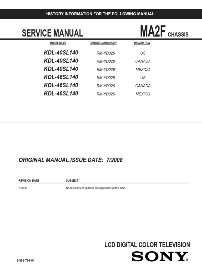 Sony Service Manual KDL-40SL140