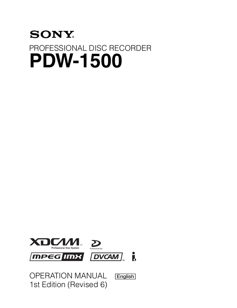 PDW-530 / PDW-510 PDW-1500 PDW-R1 PDW-V1 PDW-U1 / PDW-D1 ...