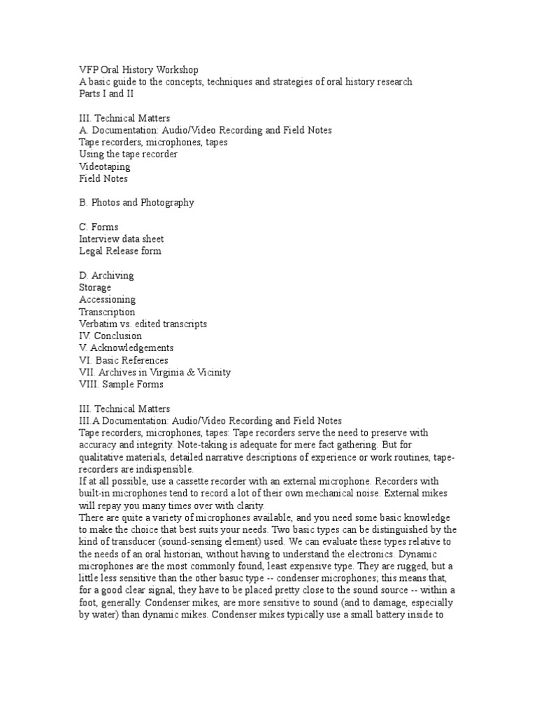 Ref-VFP Oral History Workshop | Videotape | Microphone