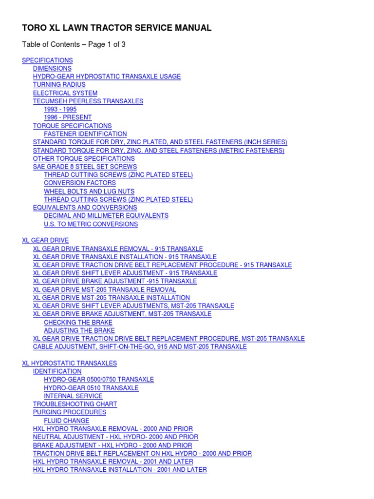 Toro Xl Tractor Service Manual | Screw | Tractor