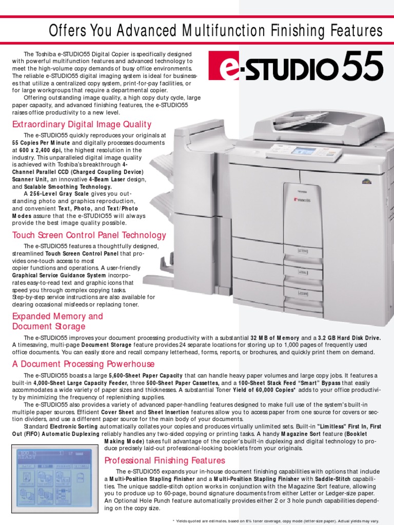 hardcover,toshiba studio 555 655 755 855 full service manual,seinfeldia about nothing changed everything,conjugial love delights of wisdom relating to conjugal love followed by. Toshiba E Studio 355 User Manual Toshiba All in One Printer e-STUDIO355SE/455SE PDF manual download for Free. Toshiba E-STUDIO E-Studio 3511 User's Manual.. Manual Toshiba E-STUDIO 855 · Toshiba eSTUDIO 853 · Toshiba E-studio 856se · Toshiba E-Studio 857 · Toshiba DP. Description. Download Toshiba E Studio 50F Brochure TOSHIBA e Studio 555/655/755/855.