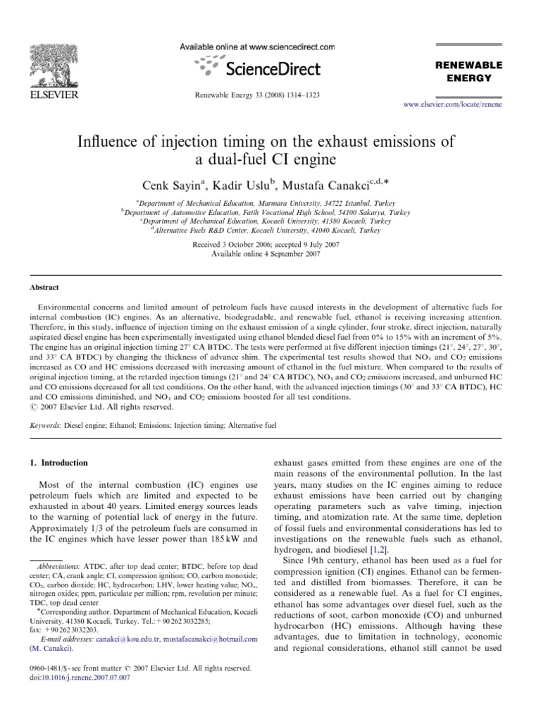Influence of Injection Timing on the Exhaust Emissions Of ...