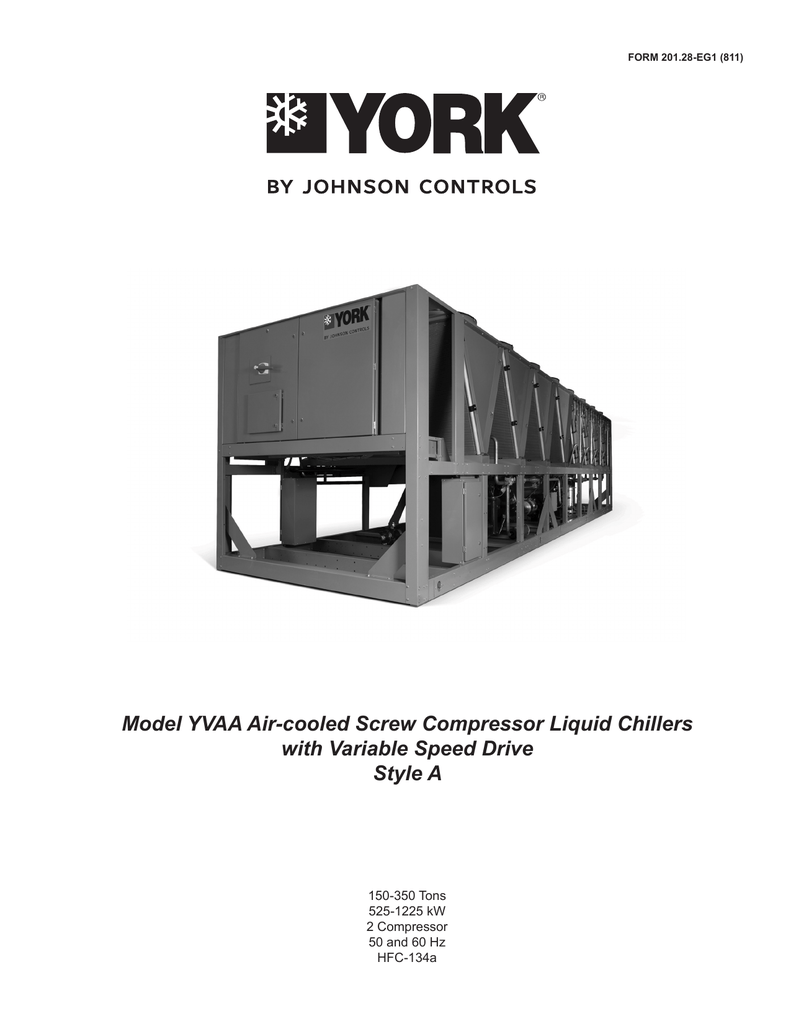York Chiller Service Manual Yvaa - Jul 23, 2016 · Air Conditioning; App Provides Quick and Easy Access to YORK Chiller Information. Information on a range of air- and water-cooled scroll chillers, including YCAL, YLAA, and YCWL, and air-cooled screw chillers, including YVAA, is available.. chiller,ycaj york chiller manual,york ycaj air cooled chiller York yvaa air-cooled screw chiller, 150 ton to 350 ton services and solutions that increase energy efficiency and lower operating costs in buildings for more than one YORK YVAA Air-Cooled Screw Chiller, 150 ton to. chiller-manual.pdf. Wedding party york chiller service manual yeaj is the fact that which includes a technical device. YORK CHILLER YT SERVICE MANUAL (Complete). recommends you read and download 30gt carrier chiller manual information observed in this YORK YT CHILLER SERVICE MANUAL. PDF. Available. Download a copy of the instructions York.Model YVAA Air-Cooled Screw Compressor Liquid Chillers . with Variable Speed Drive Style A. 150-500 Tons 525-1750 kW. 2 Compressor YVAA chillers are simpler in design with easy access to service components The performance of the YORK YVAA chiller has been certified to the Air Conditioning, Heating, and Refrigeration Institute (AHRI) as. york-ycaj-chiller-service-manual.pdf FREE PDF DOWNLOAD NOW!!! Source #2: york-ycaj-chiller-service-manual.pdf FREE PDF DOWNLOAD There could be some typos (or mistakes) below (html to pdf converter made them): york ycaj chiller service manual All Images Videos Maps News Shop |. Get York YT Millenium Centrifugal Liquid Chillers Model YT (Style J) R123 Cooling Only Operating and Maintenance Manual. Get all York manuals! ManualShelf The Commissioning date is entered by the YORK Service Technician at the time of chiller commissioning. These values should never be changed or entered by anyone other than a qualiÞed.
